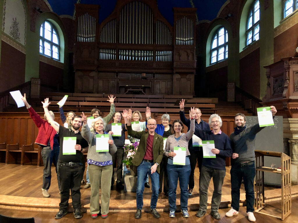 Die Teilnehmenden haben sich in sechs Tagen zu Fachpersonen für das kirchliche Umweltmanagementsystem «Grüner Güggel» ausbilden lassen. Damit steigt die Zahl der Absolvierenden des Kurses auf über 150 Personen, die befähigt sind, eine Kirchgemeinde durch die zehn Schritte zum Label Grüner Güggel zu führen.