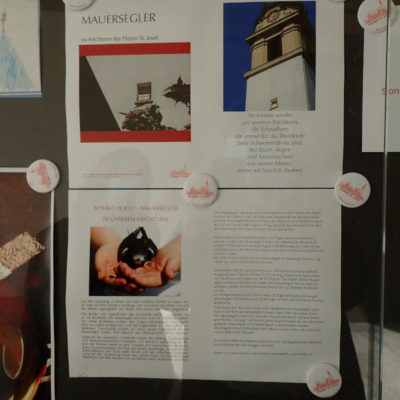 Zu den neuen Nistkästen für Mauersegler schreibt der Pfarrer von St. Josef Zürich, Hannes Kappeler, im forum 6/2021: „Wohnungen für Mauersegler: Nicht nur wir, auch die Mauersegler kennen die grosse Wohnungsnot. Neu gebaute Wohnungen sind für die meisten von uns unbezahlbar und für die Mauersegler unbrauchbar. So haben wir in Begleitung und wissenschaftlicher Beratung der Stadt nun total 20 Nistkästen in unserem alten, ehrwürdigen Turm montiert. Der Mauersegler verbringt den grössten Teil seines Lebens in grosser Höhe, im Himmel. Ist dies nicht auch unser Wunsch, unser Traum. Schauen wir hoch, damit wir die Akrobaten der Lüfte entdecken und hören. Die dank uns auch leben können.“