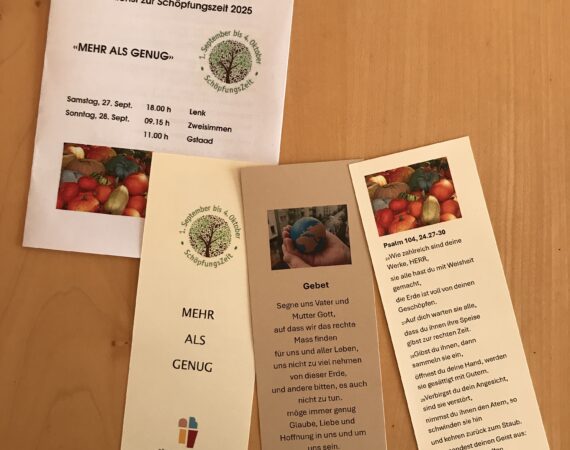 Allerorts wird die SchöpfungsZeit gefeiert - auch zum Beispiel im Obersimmental und im Saanenland! Nach einer eindrücklichen gottesdienstlichen Feier wurde das anschliessende Zusammensein im Saal sehr genossen und die angebotenen Speisen (Zwetschgen- und Apfelkuchen sowie an der Lenk zusätzlich Kürbissuppe) «brav» aufgegessen, ganz nach dem Motto «kein Food waste». Der...